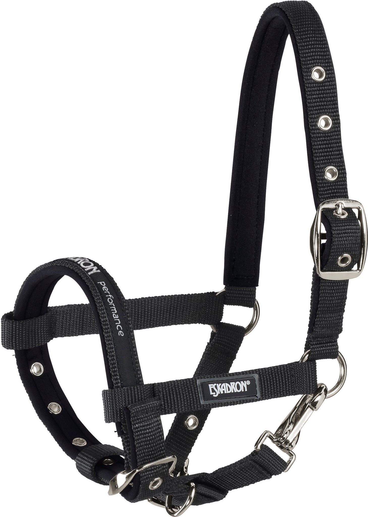 Dit veulenhalster van Eskadron begeleidt je jonge paard veilig door zijn eerste trainingssessies. Het halster is gemaakt van bijzonder scheurbestendige singelband en heeft vernikkelde metalen fittingen. De verstelbare gespen zorgen ervoor dat het zich perfect aanpast aan de groeiende grootte van het hoofd. De neus- en nekkussentjes van zacht neopreen zorgen voor comfort.