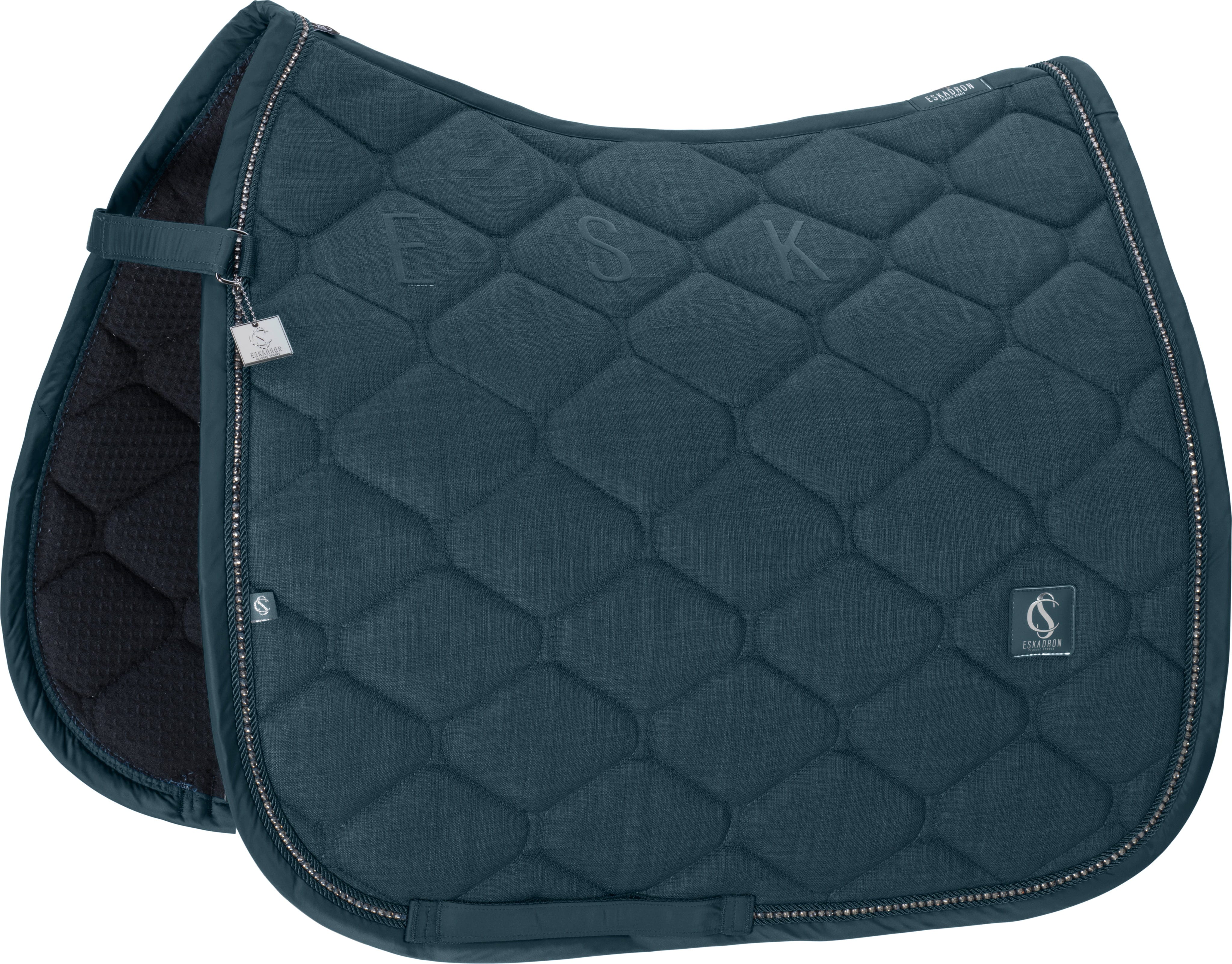 Het zadeldek Bouclé Crystal valt op door het uitzonderlijke Bouclé-bovenmateriaal met een bijzonder edele touch. De onderzijde van functionele katoenen wafelpiqué neemt vocht optimaal op en ligt aangenaam op het paard, terwijl de combinatie van koord, kristallen en een Glossy-bies zorgt voor een fonkelende finish. Antislip-siliconenvlakken in het zadelgebied zorgen voor stabiliteit en veiligheid onder het zadel.