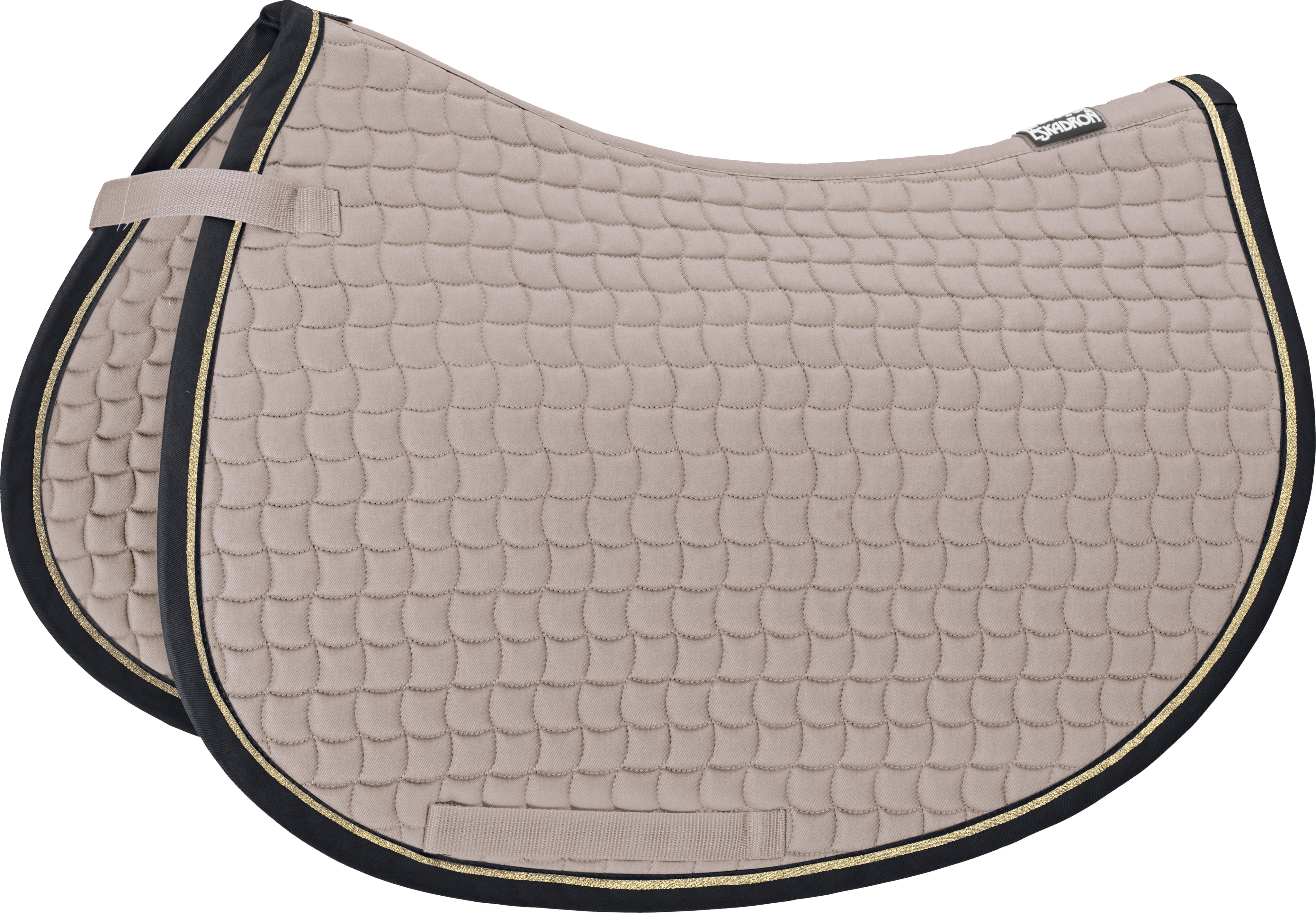 Verwen je paard met maximaal comfort en een stijlvol design met het Eskadron Cotton Lurex zadeldek. De zachte katoenen buitenkant zorgt voor een comfortabel gevoel, terwijl de vormvaste polyschuim inleg zorgt voor een optimale pasvorm. De contrasterende randen geven het zadeldek een moderne uitstraling die indruk zal maken in de rijbak. Kwaliteit met de beproefde Eskadron-standaard - het origineel waarop je kunt vertrouwen.