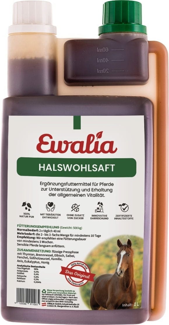 Vrije luchtwegen zijn essentieel voor het algemene welzijn en de prestaties. Om een vrije ademhaling te ondersteunen, heeft Ewalia een formule van speciale kruiden ontwikkeld en aangevuld met heerlijke honing. In de zorgvuldig ontwikkelde formule zitten onder andere anijs, brandnetel- en heemstblad, venkel, kamille, zoethoutwortel en tijmkruid. Vrij van kleurstoffen, conserveringsmiddelen en toegevoegde suiker.
