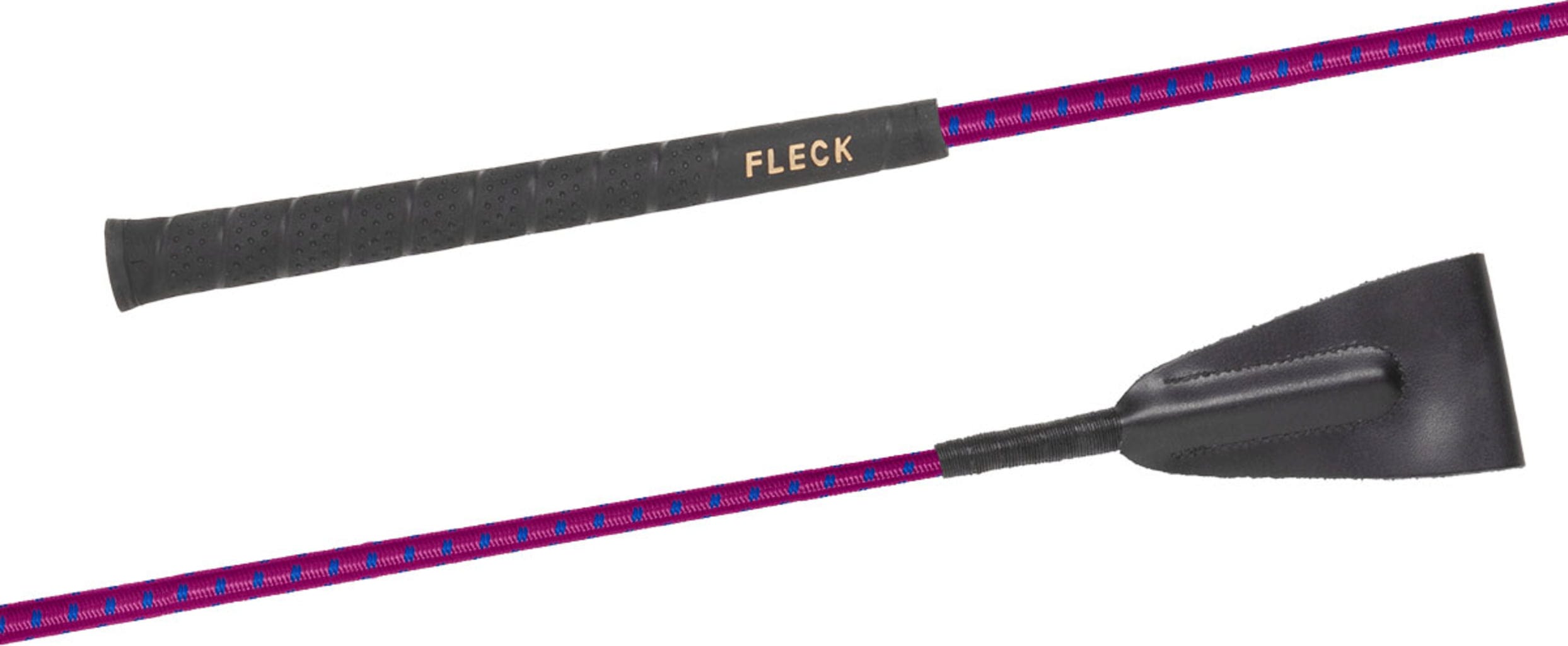Het klassieke springzweep van fijn geweven nylon en met het typische FLECK-handvat biedt efficiënte ondersteuning bij het springen of ontspannen rijden.