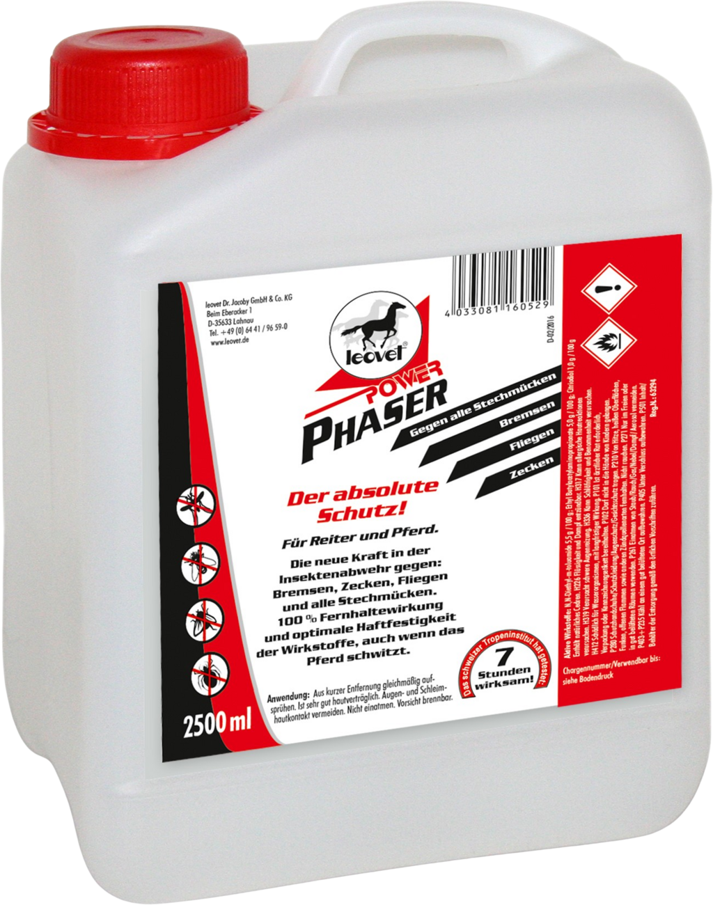 Power Phaser garandeert een absoluut afstotende werking tegen alle insecten en dazen gedurende minimaal 7 uur. Het afstotende effect en de lange werkingsduur worden bereikt door perfect op elkaar afgestemde ingrediënten. Het zweeteffect wordt zeer aanzienlijk verminderd.