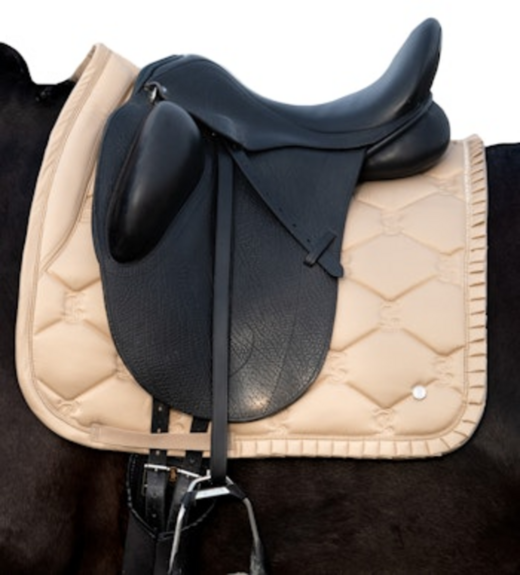Een bijzonder hoogtepunt is de decoratieve ruche-afwerking, die het zadeldek een chique en tegelijk speelse uitstraling geeft. De Quick Dry-voering aan de onderzijde voert vocht effectief af en ondersteunt een snelle droging na het rijden. Het vuilafstotende oppervlak maakt het onderhoud bijzonder eenvoudig. Het ontwerp wordt gecompleteerd door het iconische PS-citaat langs de ruggengraat – een echte blikvanger in de dressuurring.