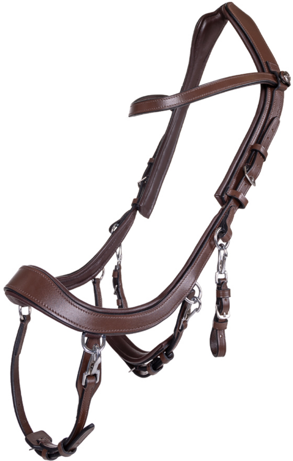 Ook in het gezicht zorgt het ontwerp voor maximale drukverlichting. De neusriem is zo geplaatst dat het gevoelige uiteinde van het neusbeen en het jukbeen worden ontzien, terwijl het uittredepunt van de aangezichtszenuw volledig vrij blijft. Dankzij het ElasTEQ-systeem in de bakstukken ervaar je een elastische verbinding met de paardenmond, die ongewenste trekkracht op het kopstuk opvangt. Het hoofdstel is vervaardigd uit hoogwaardig, plantaardig gelooid leer en biedt daarmee een milieuvriendelijke én huidvriendelijke kwaliteit.