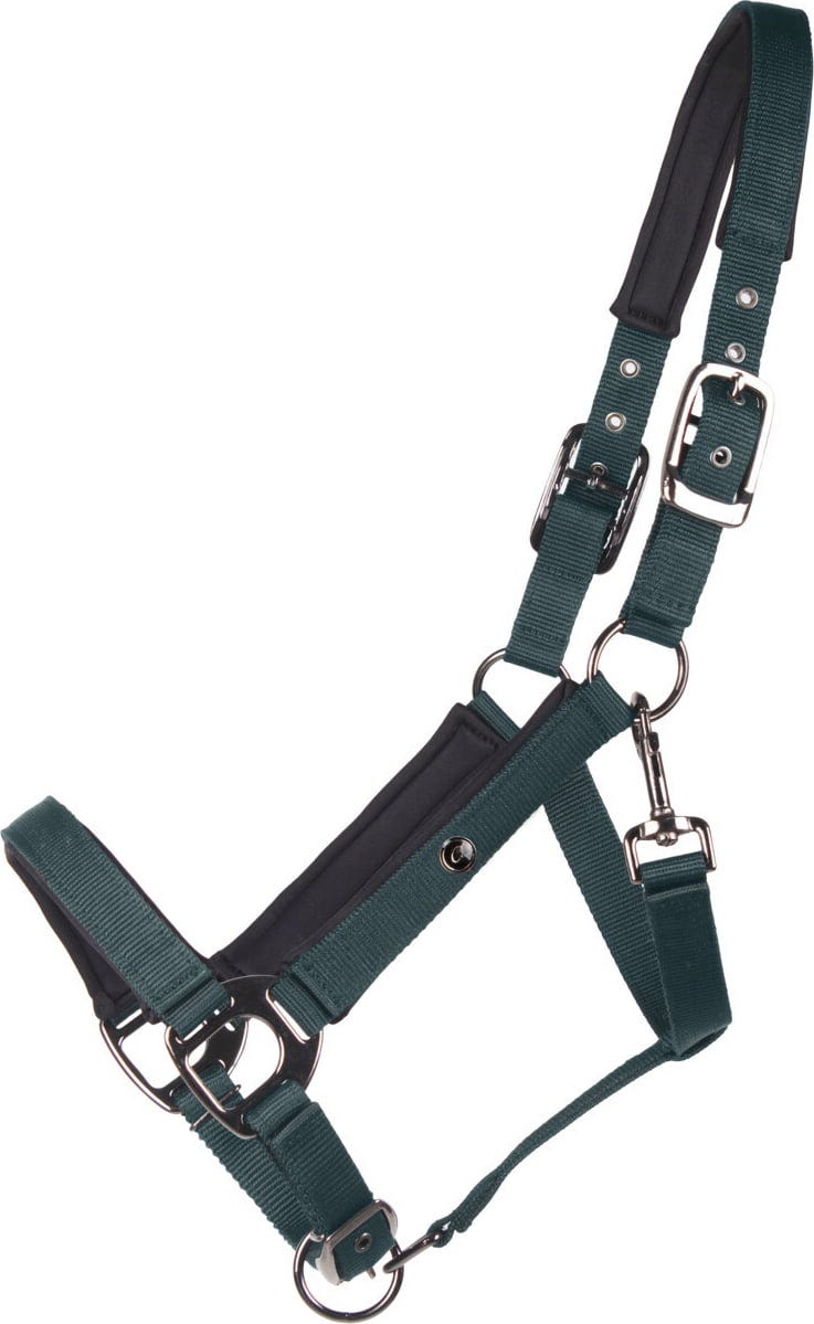 Voor een optimale pasvorm kan dit halster eenvoudig op twee plaatsen worden versteld: zowel op het kopstuk als op de neusriem. De hoogwaardige zwarte zinkmetalen fournituren geven het halster een elegante uitstraling en worden gecompleteerd door de praktische karabijnsluiting bij de keel, waardoor aan- en uittrekken een fluitje van een cent is!