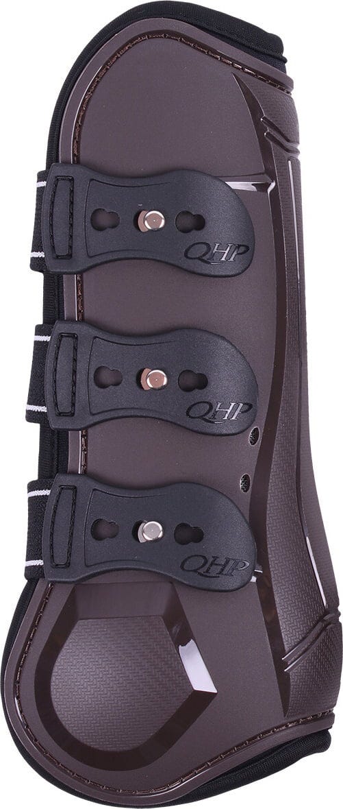 Deze sportieve peesbeschermers met harde schaal in klassiek bruin zijn ontwikkeld om de pezen van de achterbenen van je paard betrouwbaar te beschermen tegen stoten en slagen. Dankzij de intelligente materiaaltechnologie bieden ze een ideale combinatie van maximale bescherming en effectief warmtemanagement.