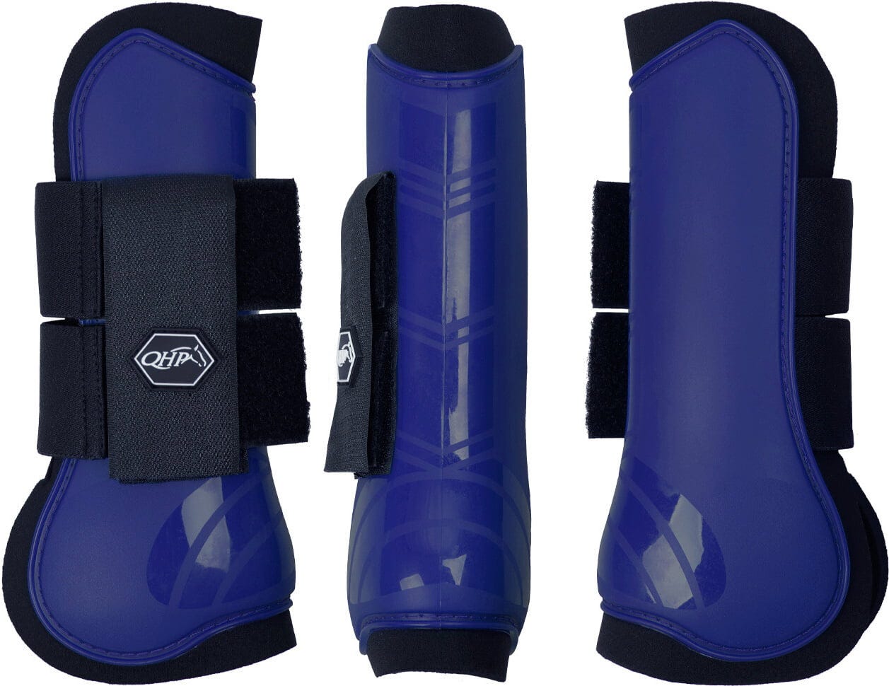 Deze set bestaat uit twee anatomisch gevormde peesbeschermers met een harde schaal in een levendige kobaltblauwe kleur. Ze bieden ideale bescherming voor de benen van je paard tijdens training en wedstrijden.