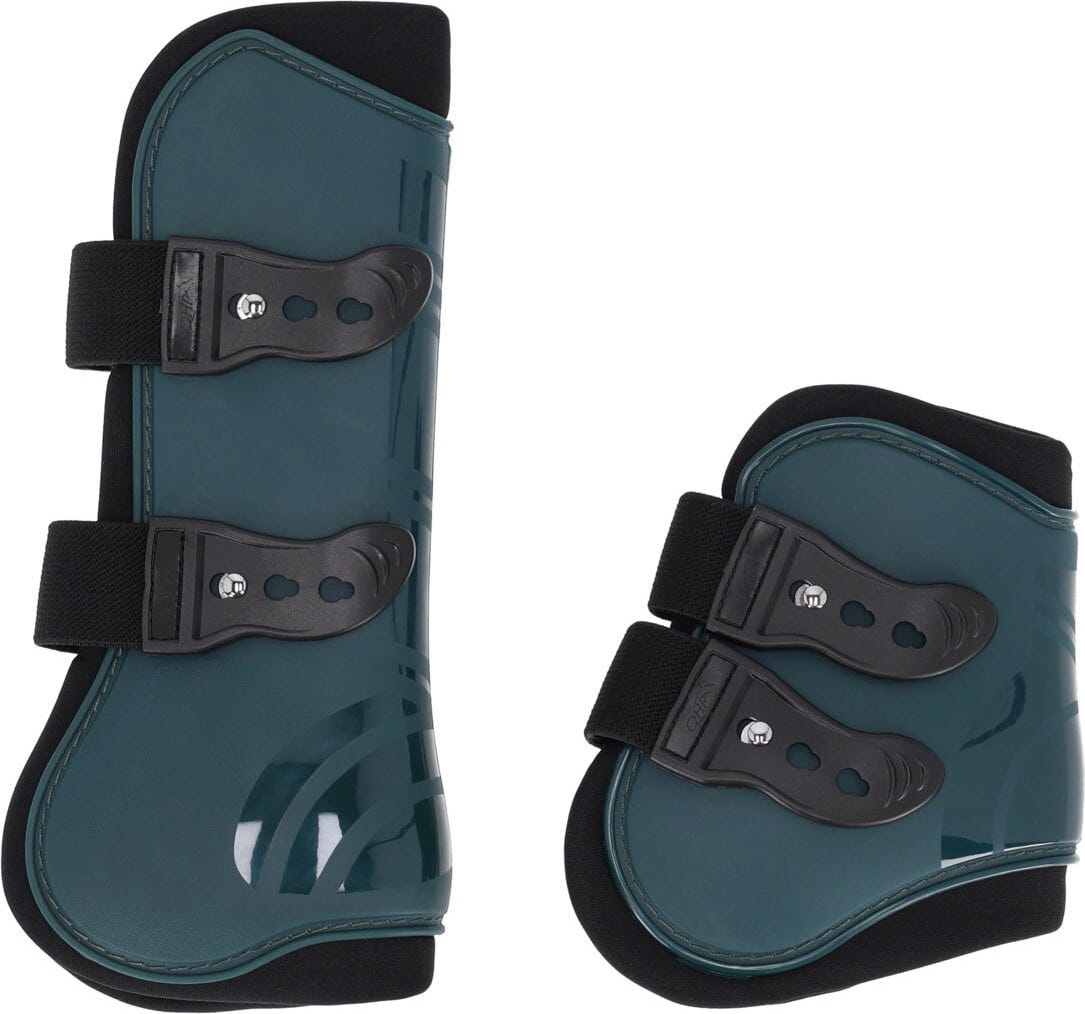 Met deze complete peesbeschermers-set van QHP kun je de gevoelige pezen en voor- en achterbenen van je paard betrouwbaar beschermen tegen stoten en slagen. De set bevat twee peesbeschermers voor de voorbenen en twee kogelbeschermers voor de achterbenen, die zorgen voor volledige bescherming tijdens de training.