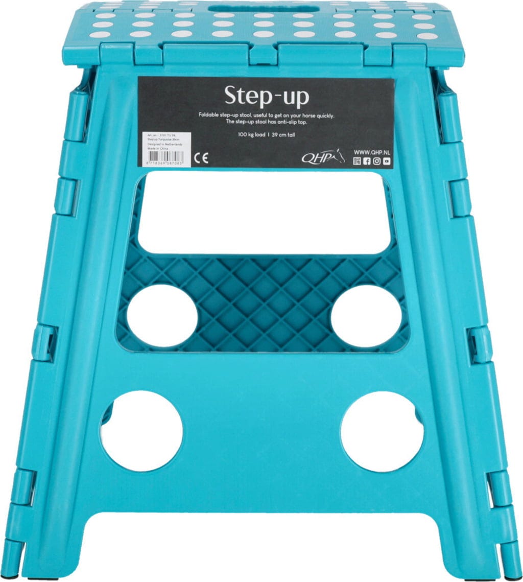 De opstapkruk van QHP is je betrouwbare hulp in de stal, op wedstrijden of in de rijbak. Of je nu op je paard stapt of je manen vlecht, deze praktische opvouwbare kruk geeft je de hoogte en veiligheid die je nodig hebt. Dankzij het compacte ontwerp kun je hem gemakkelijk inklappen en overal mee naartoe nemen.