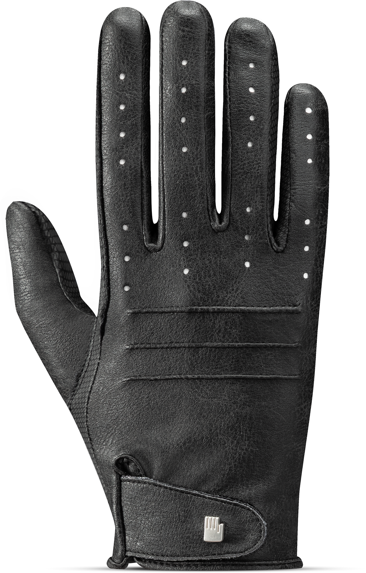 Achterhand gemaakt van exclusief SUPREMA synthetisch materiaal van ROECKL. Past naadloos in de hand. Visueel en gevoelsmatig nauwelijks van nappaleder te onderscheiden. Extra ademend vermogen door perforaties op de vingers.