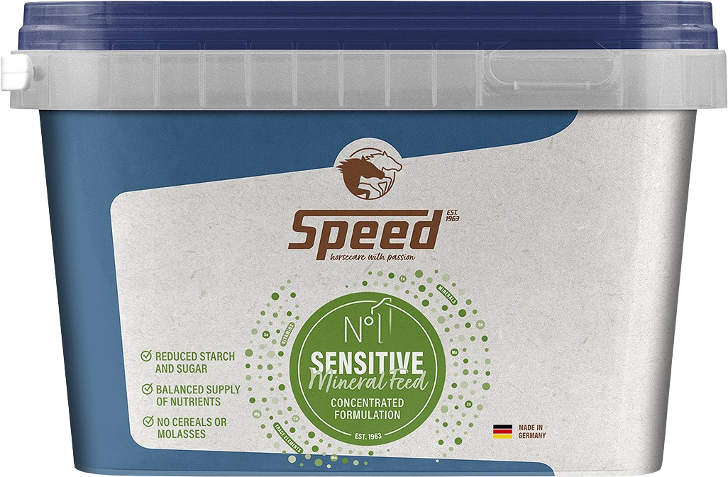 SPEED N°1 Sensitive is een mineraal krachtvoer speciaal ontwikkeld voor paarden met een gevoelige stofwisseling, allergieën of intoleranties. Het voorziet optimaal in de dagelijkse behoefte aan mineralen, vitaminen en sporenelementen.