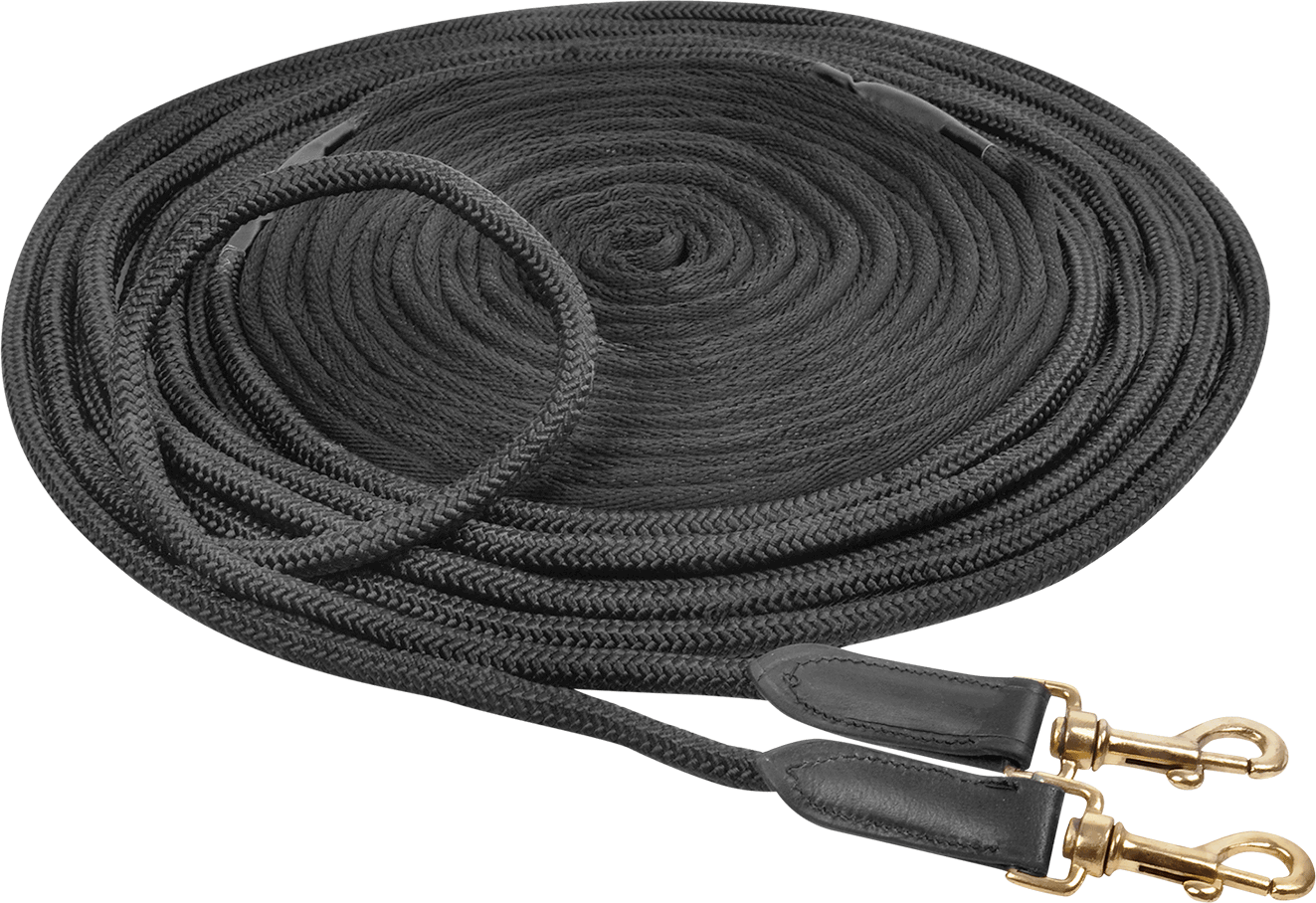 Deze dubbele longeerlijn van Waldhausen biedt aanzienlijk meer toepassingsmogelijkheden in vergelijking met de enkele longeerlijn. Het is een belangrijk onderdeel in de training en correctie tijdens rijden en mennen, omdat het effectief werken mogelijk maakt zonder het gewicht van de ruiter. De longeerlijn is slim ontworpen: de voorste delen zijn gemaakt van rondgevlochten nylon, dat bijzonder soepel door katrollen glijdt (deze zijn apart verkrijgbaar).