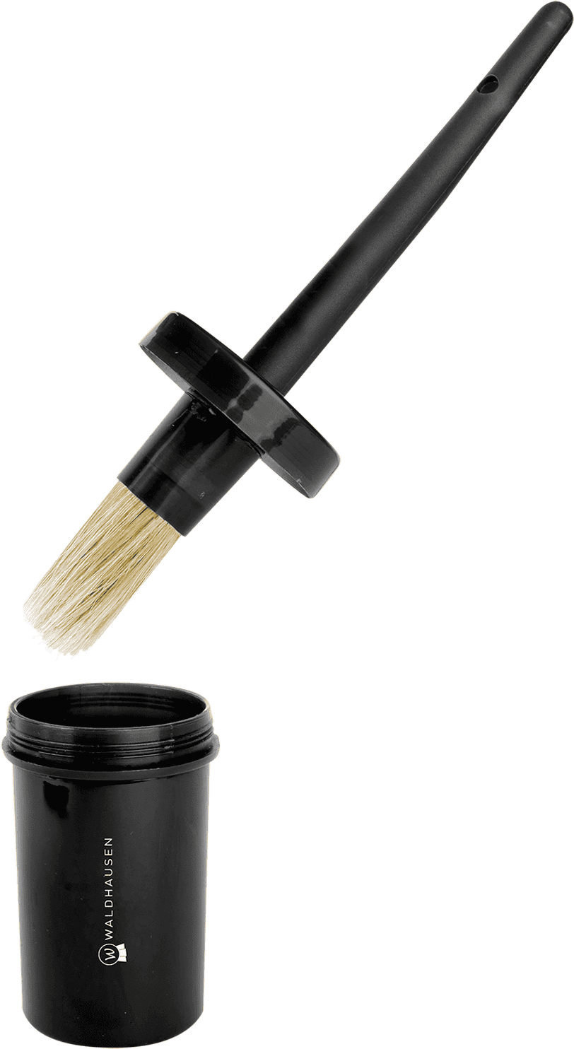 Ben je het zat dat je hoefborstel vast komt te zitten en je verzorgingsbox besmeurd raakt? Dan is de hoefkwast met dop van Waldhausen de perfecte, schone oplossing voor jou!
