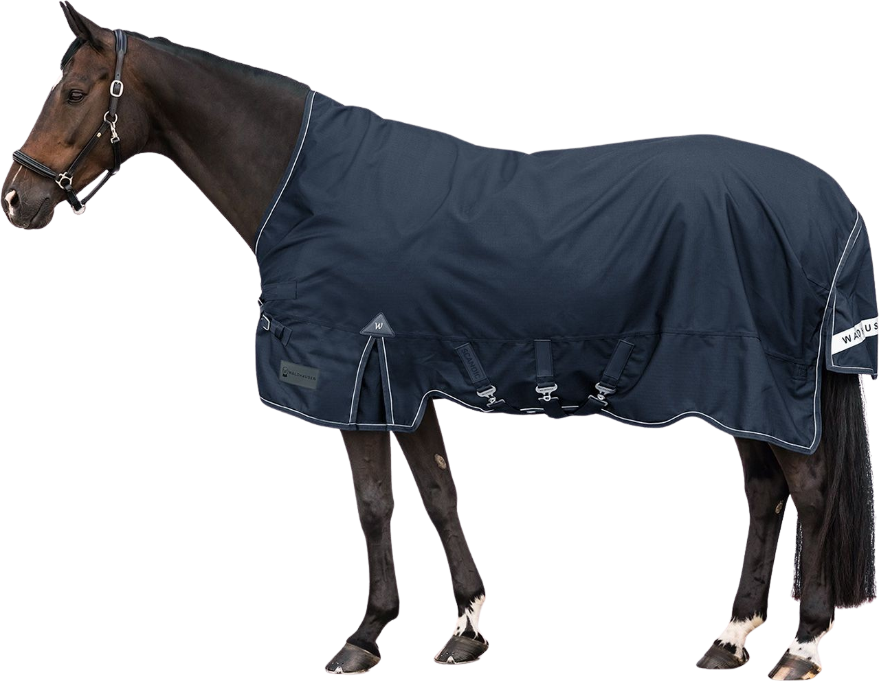 Ook qua pasvorm overtuigt de Scandic. De nieuwe, eendelige V-frontsluiting in combinatie met drie singels zorgt voor een perfecte ligging en voorkomt vervelend verschuiven. Dankzij de loopplooien geniet je paard van optimale bewegingsvrijheid, terwijl de extra grote staartflap en reflecterende bies zorgen voor goede zichtbaarheid in het donker.